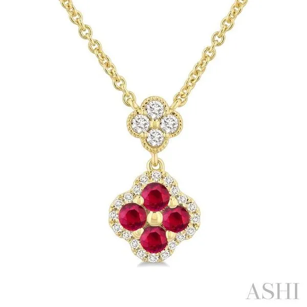 2.4 MM Round Shape Ruby and 1/4 Ctw Clover Round Cut Diamond Station Necklace in 14K Yellow Gold Image 2 Adler's Diamonds Saint Louis, MO