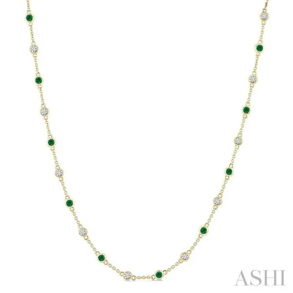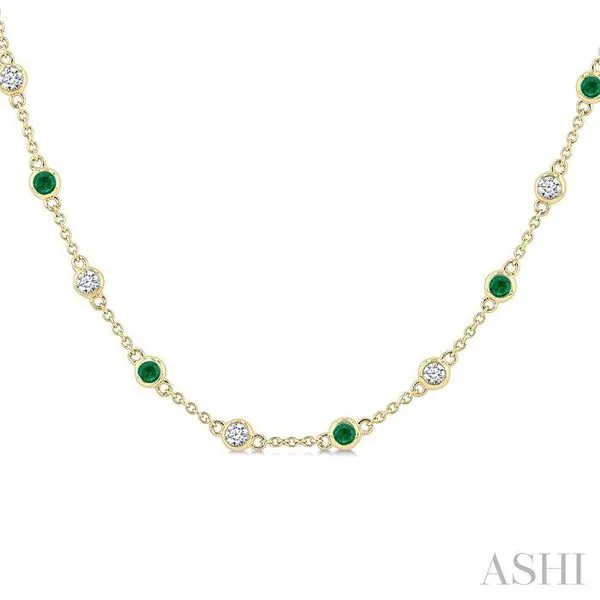 2.40 MM Round Shape Emerald and 7/8 Ctw Round Cut Diamond Precious Station Necklace in 14K Yellow Gold Image 3 Adler's Diamonds Saint Louis, MO