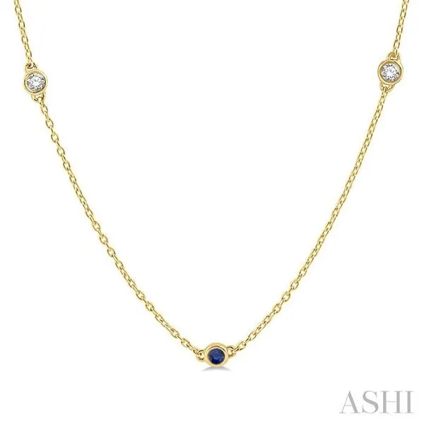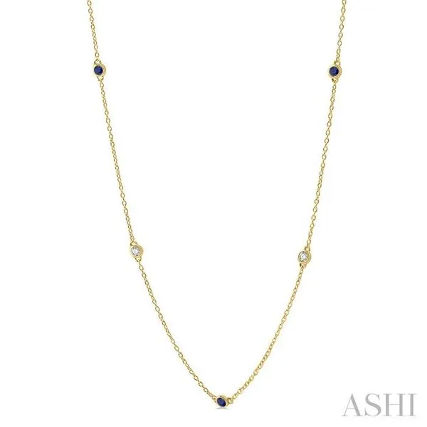 2.6 MM Sapphire and 3/8 Ctw Round Cut Diamond Precious Station Necklace in 14K Yellow Gold Image 2 Adler's Diamonds Saint Louis, MO