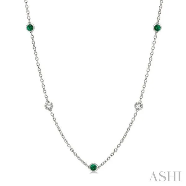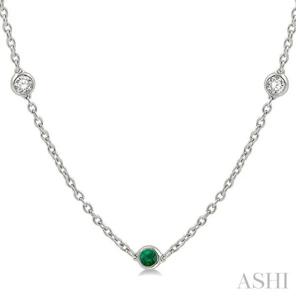 2.85 MM Emerald and 1/2 Ctw Round Cut Diamond Precious Station Necklace in 14K White Gold Image 2 Adler's Diamonds Saint Louis, MO