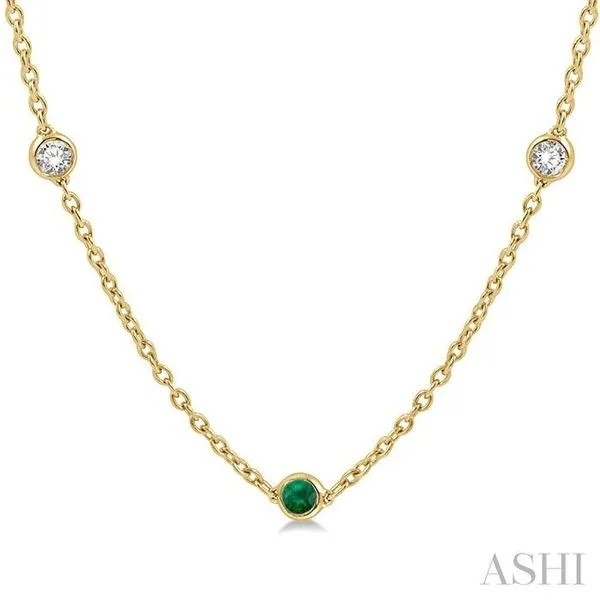 2.85 MM Emerald and 1/2 Ctw Round Cut Diamond Precious Station Necklace in 14K Yellow Gold Image 3 Adler's Diamonds Saint Louis, MO