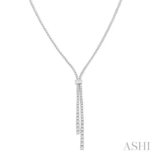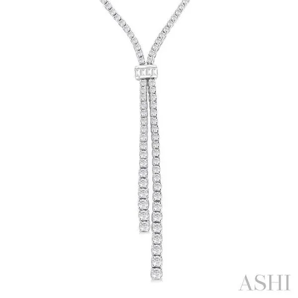 3 Ctw Split Y-Shape Baguette and Round Cut Diamond Lariat Necklace in 14K White Gold Image 3 Adler's Diamonds Saint Louis, MO