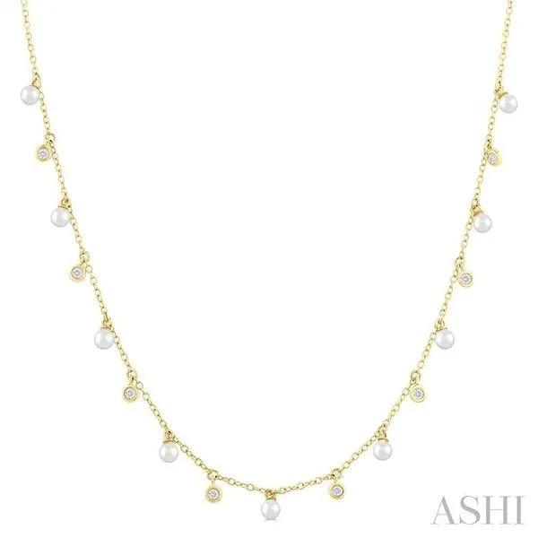 3 MM Round Shape Cultured Pearl and 1/6 Ctw Round Cut Diamond Station Necklace in 14K Yellow Gold Image 3 Adler's Diamonds Saint Louis, MO