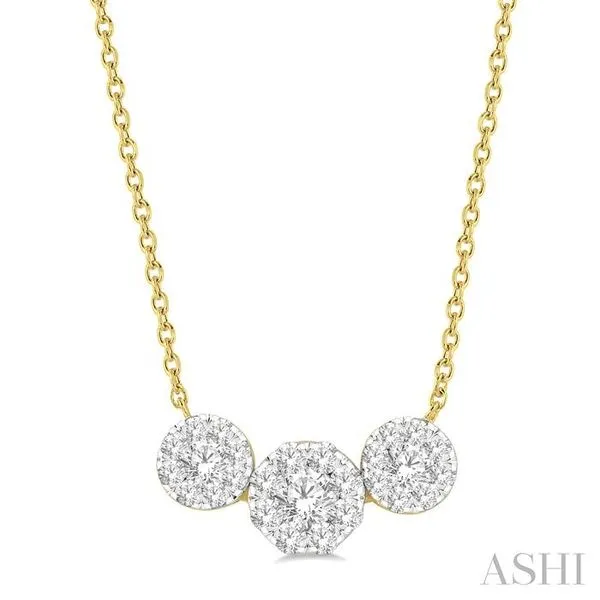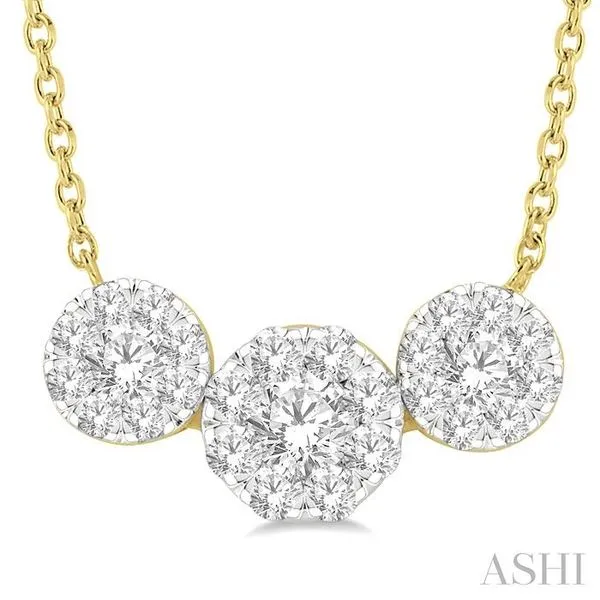 3/4 Ctw 3-Stone Lovebright Round Cut Diamond Necklace in 14K Yellow and White Gold Image 2 Adler's Diamonds Saint Louis, MO