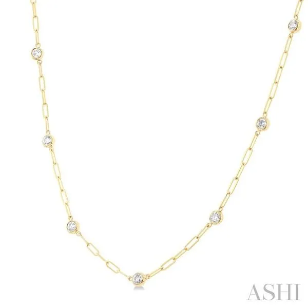 3/4 Ctw Bezel Set Round Cut Diamond Paperclip Station Necklace in 14K Yellow Gold Image 2 Adler's Diamonds Saint Louis, MO