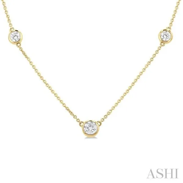 3/4 Ctw Bezel Set Round Cut Diamond Station Necklace in 14K Yellow Gold Image 2 Adler's Diamonds Saint Louis, MO
