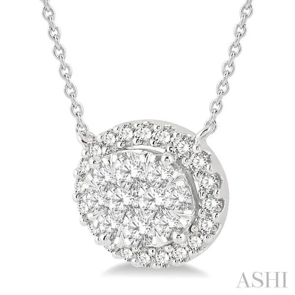3/4 Ctw Oval Shape Round Cut Diamond Lovebright Pendant With Chain in 14K White Gold Image 2 Adler's Diamonds Saint Louis, MO