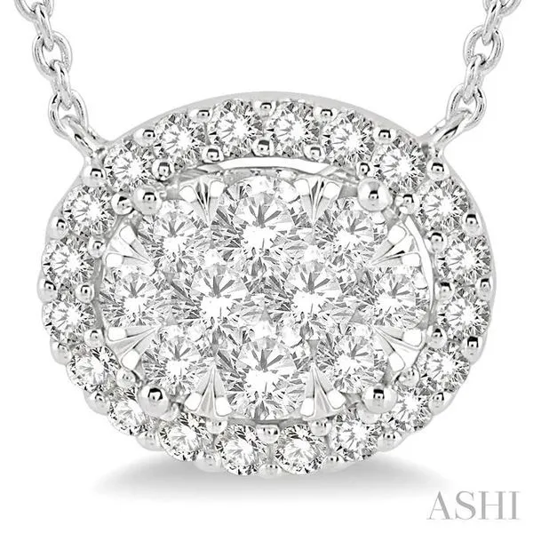 3/4 Ctw Oval Shape Round Cut Diamond Lovebright Pendant With Chain in 14K White Gold Image 3 Adler's Diamonds Saint Louis, MO