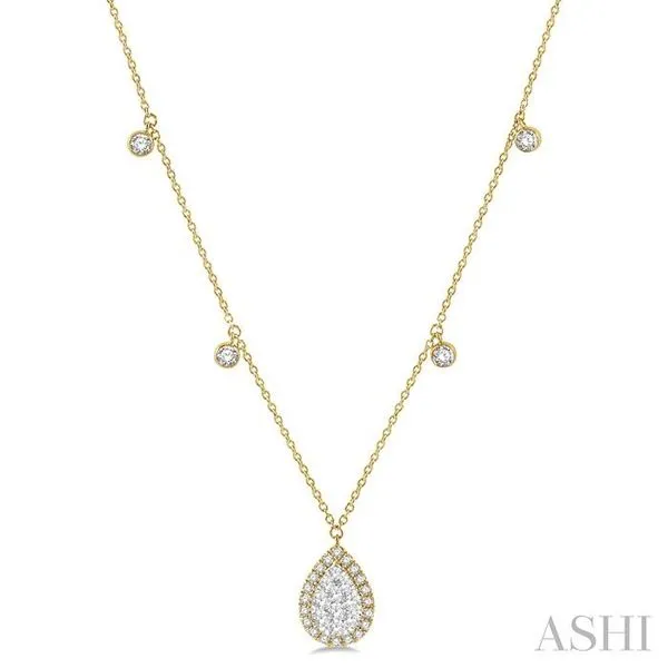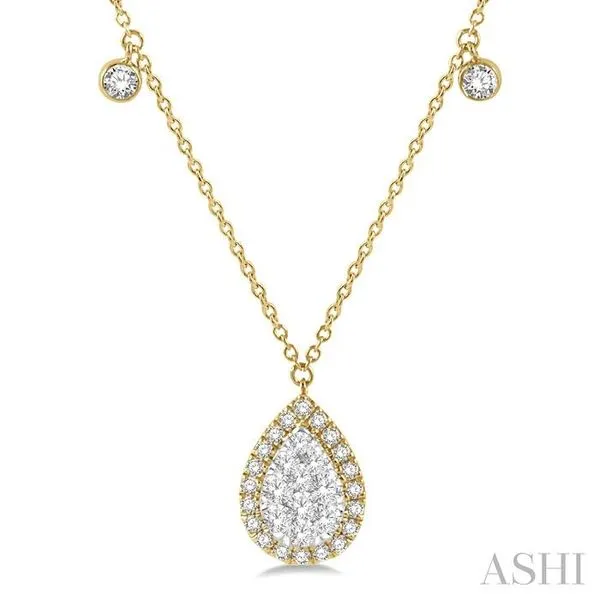 3/4 Ctw Pear Shape Lovebright Round Cut Diamond Necklace in 14K Yellow and White Gold Image 2 Adler's Diamonds Saint Louis, MO