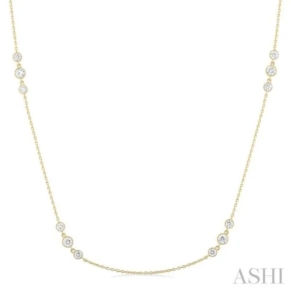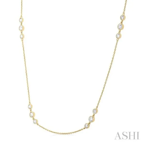 3/4 Ctw Three Stone Bezel Set Round Cut Diamond Station Necklace in 14K Yellow Gold Image 2 Adler's Diamonds Saint Louis, MO