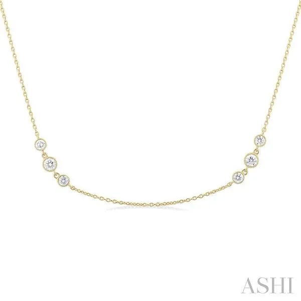 3/4 Ctw Three Stone Bezel Set Round Cut Diamond Station Necklace in 14K Yellow Gold Image 4 Adler's Diamonds Saint Louis, MO