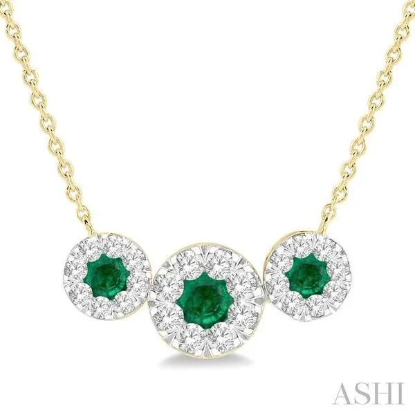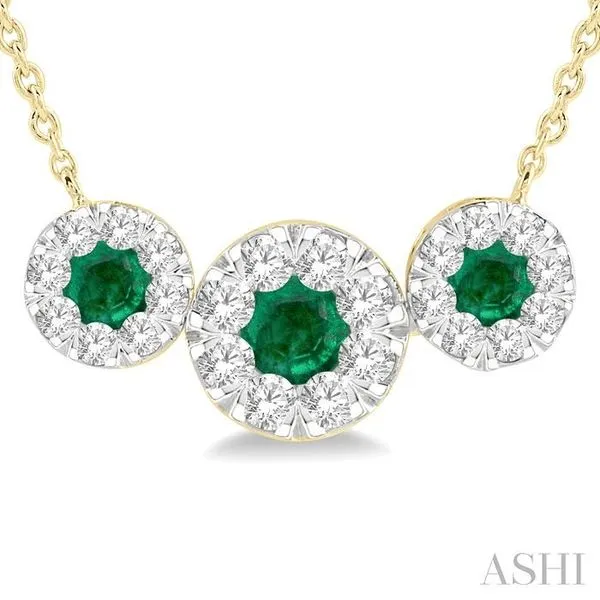 (314) 394-20863.80 MM & 3 MM Round Shape Emerald and 5/8 Ctw Round Cut Diamond Past Present & Future Precious Lovebright Necklace in 14K Yellow and White Gold