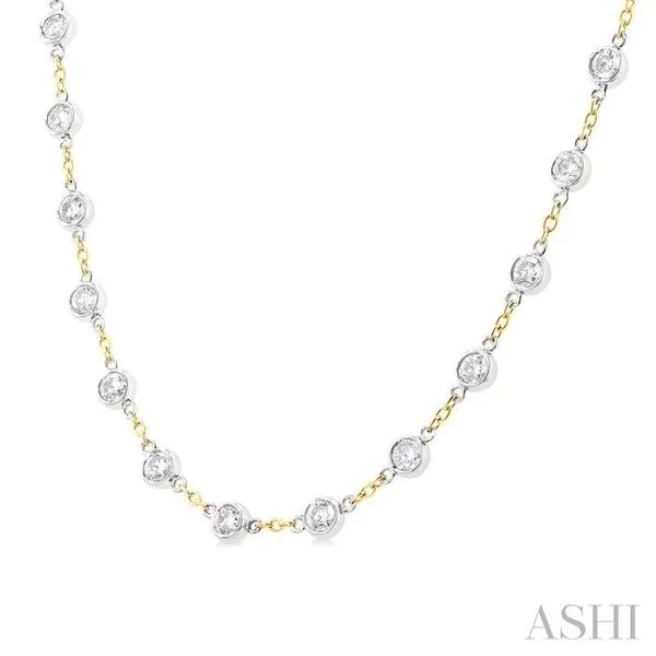 4 Ctw Bezel Set Round Cut Diamond Station Necklace in 14K Yellow and White Gold Image 2 Adler's Diamonds Saint Louis, MO