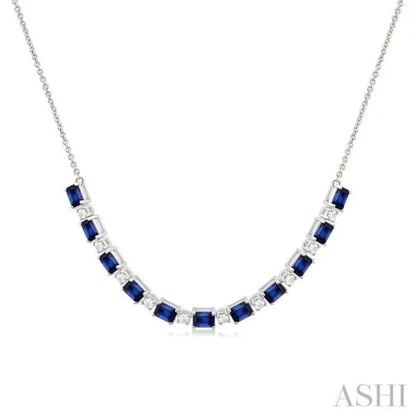 4X3 MM Octagon Shape Sapphire and 1/2 Ctw Round Cut Diamond Precious Tennis Necklace in 14K White Gold Image 3 Adler's Diamonds Saint Louis, MO