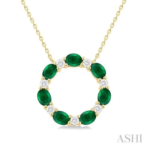 4x3 MM Oval Cut Emerald and 1/4 Ctw Round Cut Diamond Circle Pendant in 14K Yellow Gold Image 3 Adler's Diamonds Saint Louis, MO