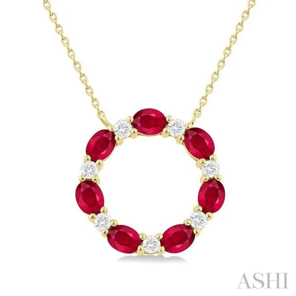 4x3 MM Oval Cut Ruby and 1/4 Ctw Round Cut Diamond Circle Pendant in 14K Yellow Gold Image 3 Adler's Diamonds Saint Louis, MO