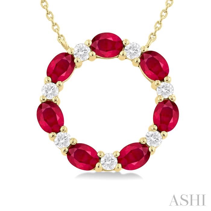 3. 4x3 MM Oval Cut Ruby and 1/4 Ctw Round Cut Diamond Circle Pendant in 14K Yellow Gold