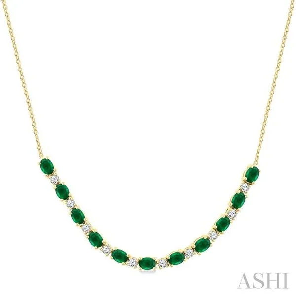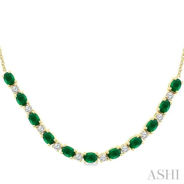 4X3 MM Oval Shape Emerald and 1/2 Ctw Round Cut Diamond Precious Tennis Necklace in 14K Yellow Gold Image 2 Adler's Diamonds Saint Louis, MO
