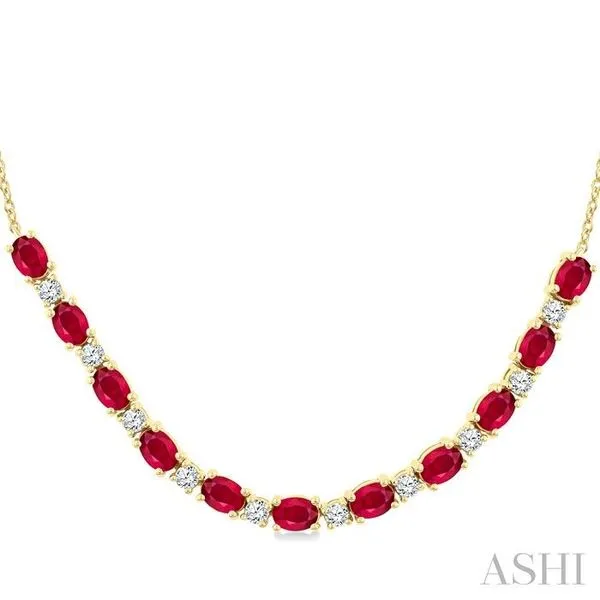 4X3 MM Oval Shape Ruby and 1/2 Ctw Round Cut Diamond Precious Tennis Necklace in 14K Yellow Gold Image 2 Adler's Diamonds Saint Louis, MO