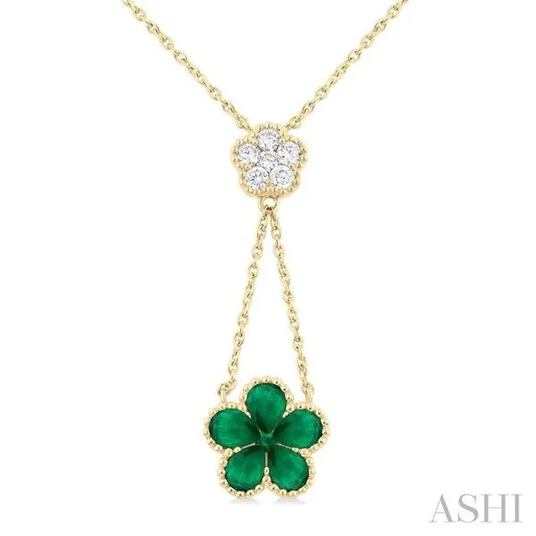 4x3 MM Pear Cut & 1.8 MM Round Emerald and 1/5 Ctw Round Cut Diamond Floral Blossom Precious Necklace in 14K Yellow Gold Adler's Diamonds Saint Louis, MO