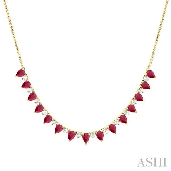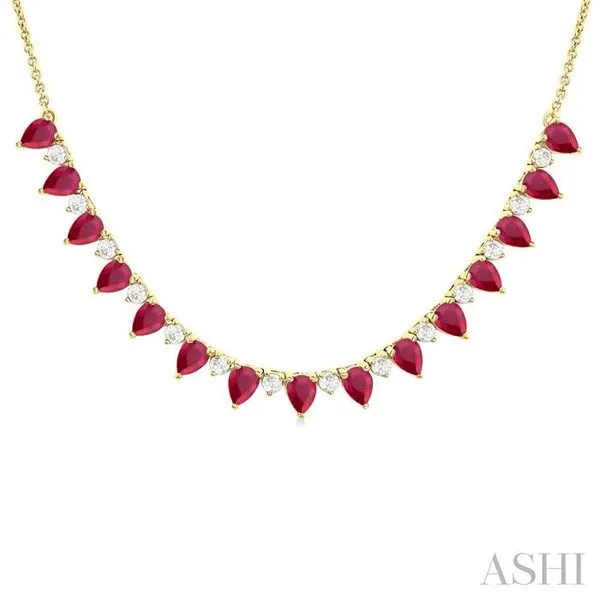 4x3 MM Pear Shape Ruby and 1/2 Ctw Round Cut Diamond Precious Tennis Necklace in 14K Yellow Gold Image 2 Adler's Diamonds Saint Louis, MO