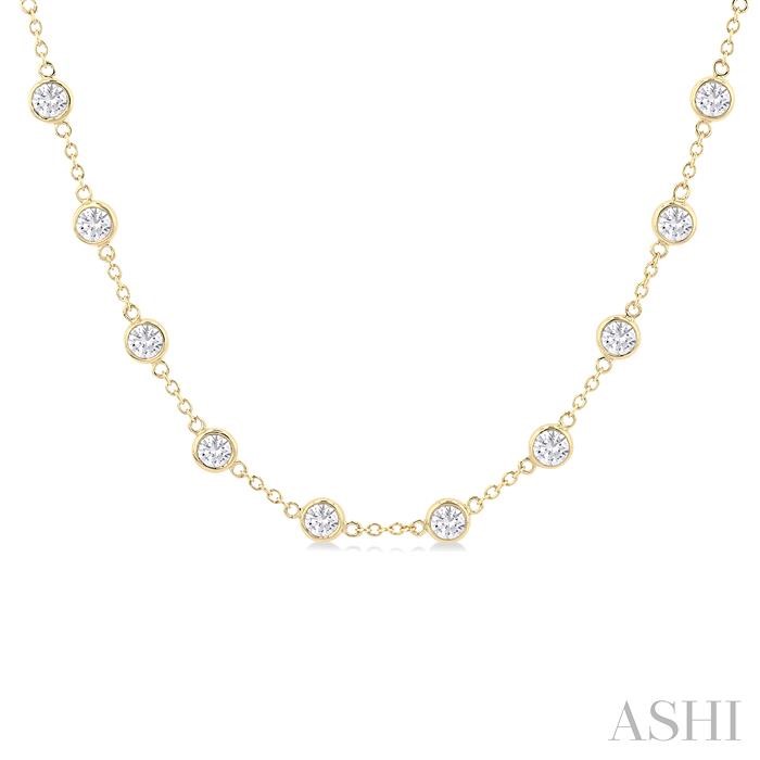 5 Ctw Bezel Set Round Cut Diamond Station Necklace in 14K Yellow Gold