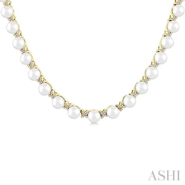 5 MM Cultured Pearl and 1 1/4 Ctw Round Cut Diamond Floral Fashion Necklace in 14K Yellow Gold Image 2 Adler's Diamonds Saint Louis, MO