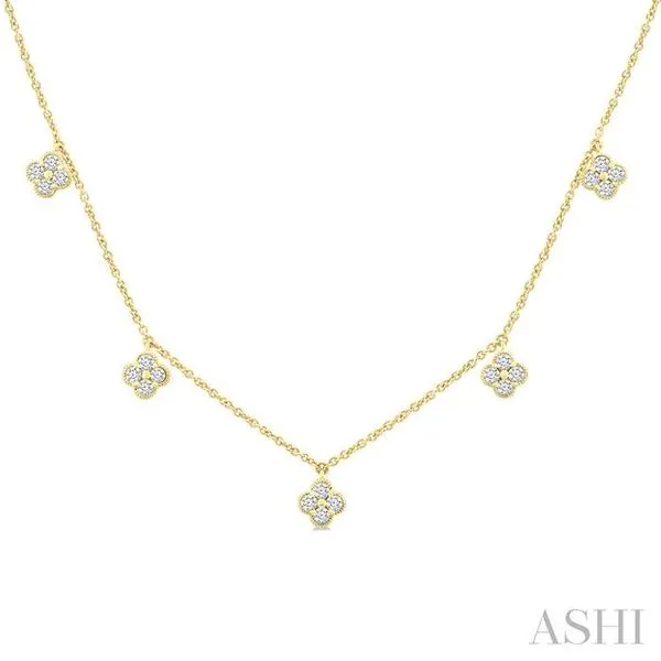 5/8 Ctw Clover Round Cut Diamond Station Necklace in 14K Yellow Gold Adler's Diamonds Saint Louis, MO