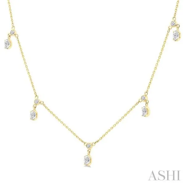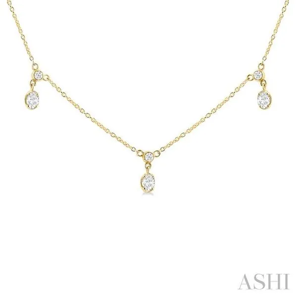 5/8 Ctw Dangle Oval and Round Cut Diamond Station Necklace in 14K Yellow Gold Image 3 Adler's Diamonds Saint Louis, MO