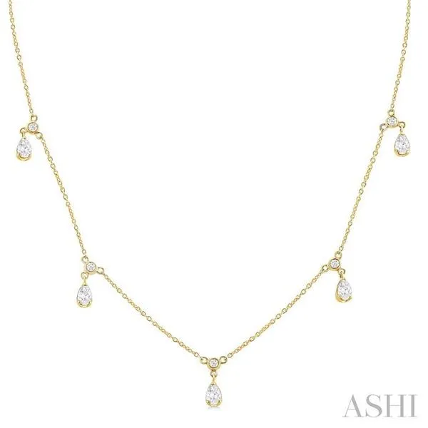 5/8 Ctw Dangle Pear and Round Cut Diamond Station Necklace in 14K Yellow Gold Image 2 Adler's Diamonds Saint Louis, MO