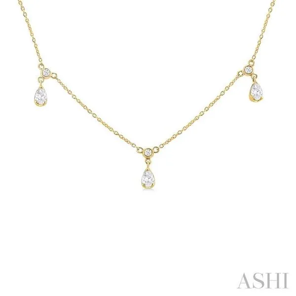5/8 Ctw Dangle Pear and Round Cut Diamond Station Necklace in 14K Yellow Gold Image 3 Adler's Diamonds Saint Louis, MO
