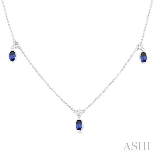 5x3 MM Oval Shape Sapphire and 1/4 Ctw Round Cut Diamonds Precious Station Necklace in 14K White Gold Image 2 Adler's Diamonds Saint Louis, MO