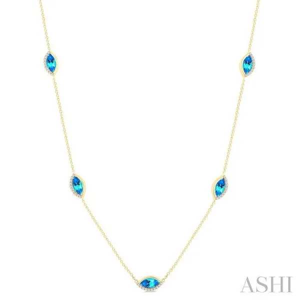 8X4 MM Marquise Shape Blue Topaz and 1/4 Ctw Round Cut Diamond Semi-Precious Necklace in 10K Yellow Gold Image 3 Adler's Diamonds Saint Louis, MO