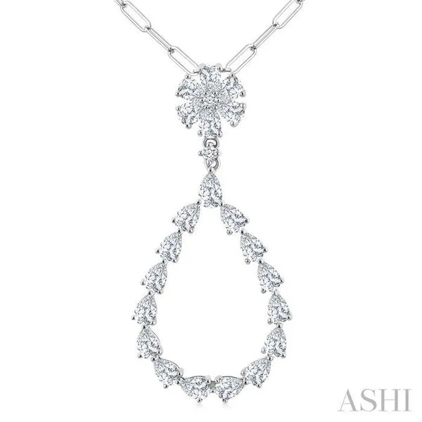 1 7/8 Ctw Floral Open Window Pear and Round Cut Diamond Dangle Fashion Pendant With Chain in 14K White Gold Image 3 Adler's Diamonds Saint Louis, MO