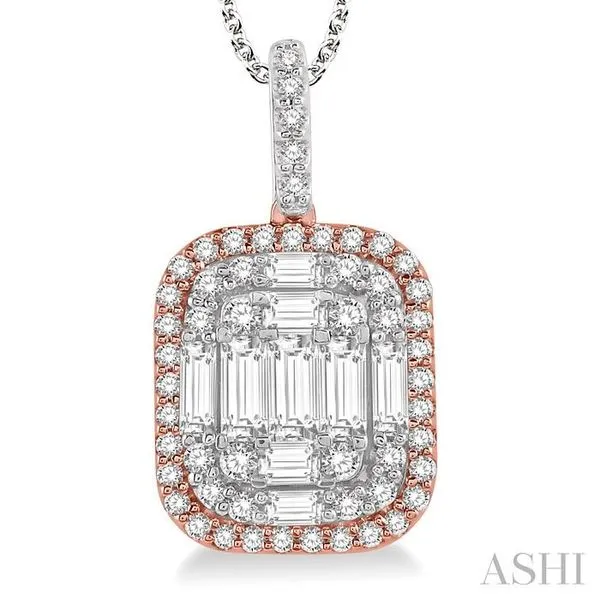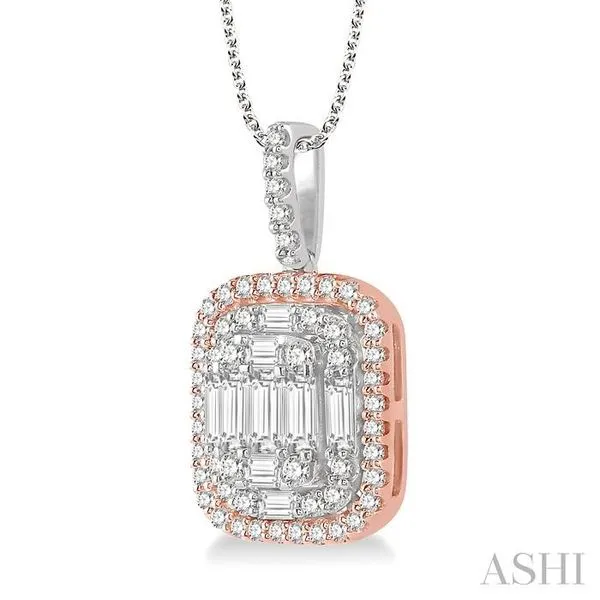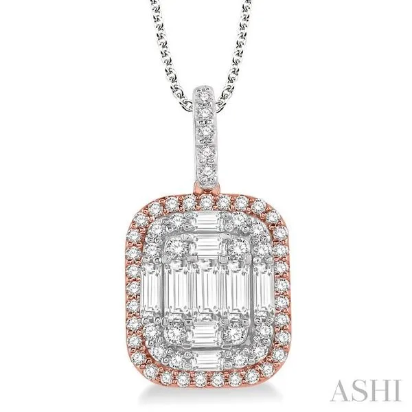 1 Ctw Baguette & Round Cut Fusion Diamond Pendant With Chain in 14K White and Rose Gold Image 3 Adler's Diamonds Saint Louis, MO