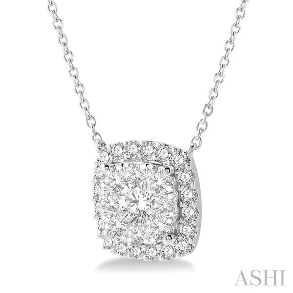 1 Ctw Cushion Shape Lovebright Diamond Pendant With Chain in 14K White Gold Image 2 Adler's Diamonds Saint Louis, MO