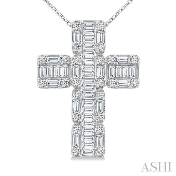 1 Ctw Fusion Baguette and Round Cut Diamond Cross Fashion Pendant With Chain in 14K White Gold Image 2 Adler's Diamonds Saint Louis, MO