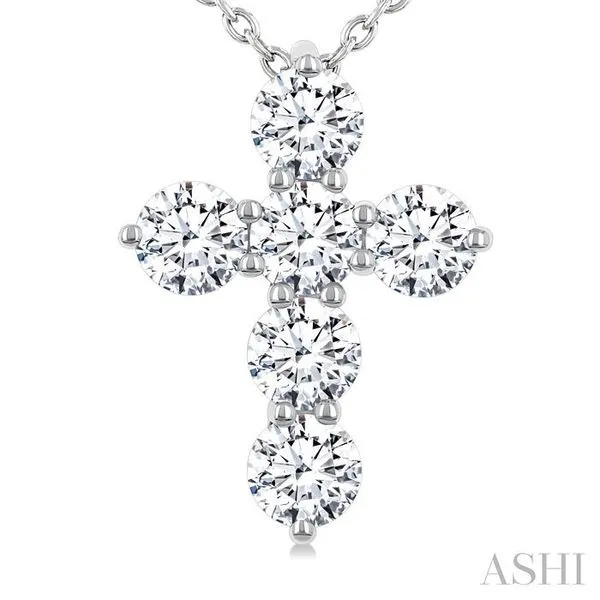 1 Ctw Round Cut Diamond Christian Cross 6-Stone Fashion Pendant With Chain in 14K White Gold Image 3 Adler's Diamonds Saint Louis, MO