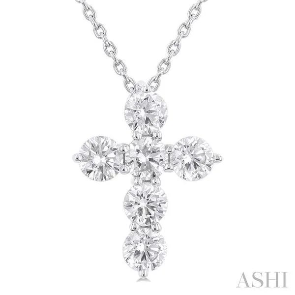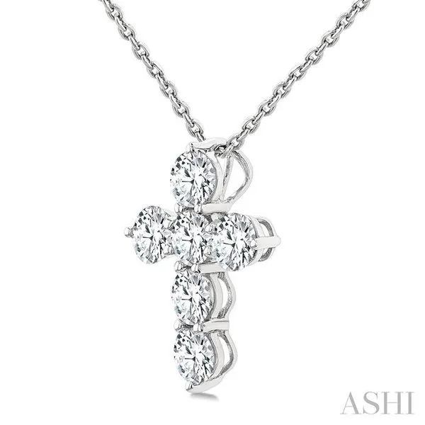 1 Ctw Round Cut Diamond Christian Cross 6-Stone Fashion Pendant With Chain in 14K White Gold Image 3 Adler's Diamonds Saint Louis, MO
