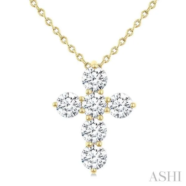 1 Ctw Round Cut Diamond Christian Cross 6-Stone Fashion Pendant With Chain in 14K Yellow Gold Image 2 Adler's Diamonds Saint Louis, MO