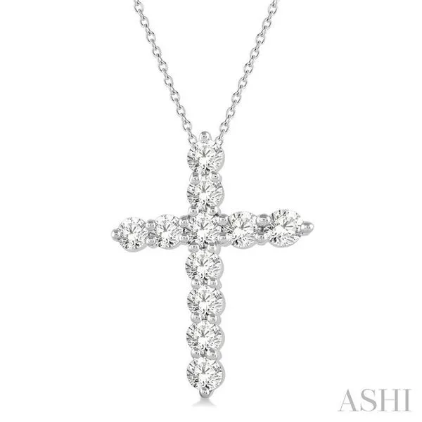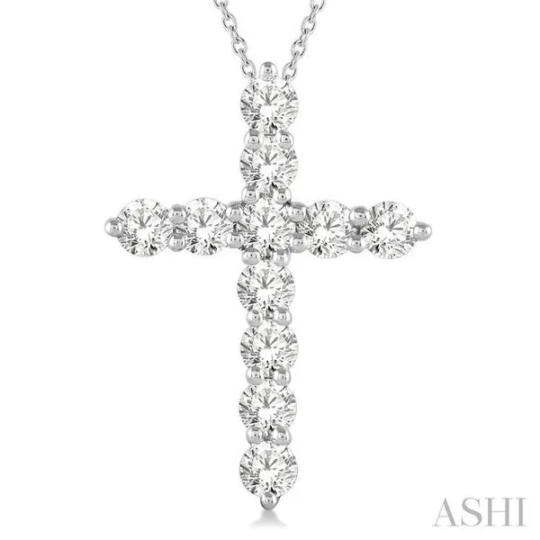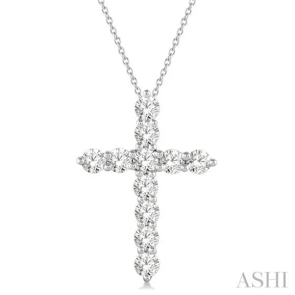 1 Ctw Round Cut Diamond Cross Pendant in 14K White Gold with Chain Image 2 Adler's Diamonds Saint Louis, MO