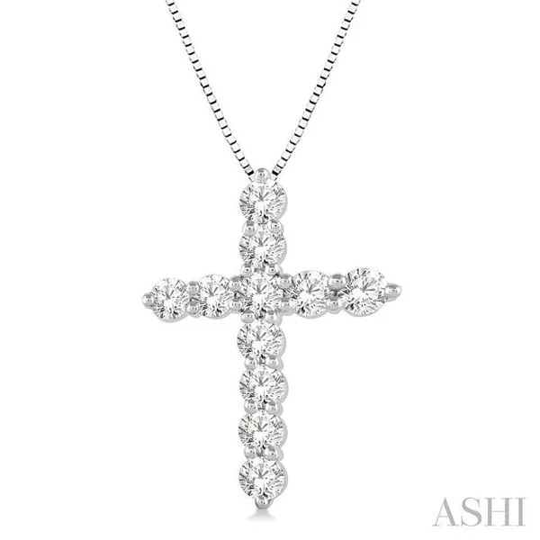1 Ctw Round Cut Diamond Cross Pendant in 14K White Gold with Chain Image 2 Adler's Diamonds Saint Louis, MO