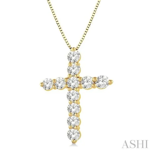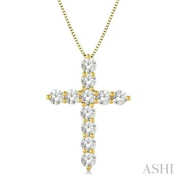 1 Ctw Round Cut Diamond Cross Pendant in 14K Yellow Gold with Chain Image 2 Adler's Diamonds Saint Louis, MO