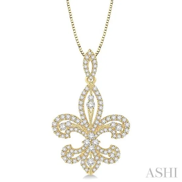 1 Ctw Round Cut Diamond Fleur De Lis Diamond Pendant in 14K Yellow Gold with Chain Image 2 Adler's Diamonds Saint Louis, MO