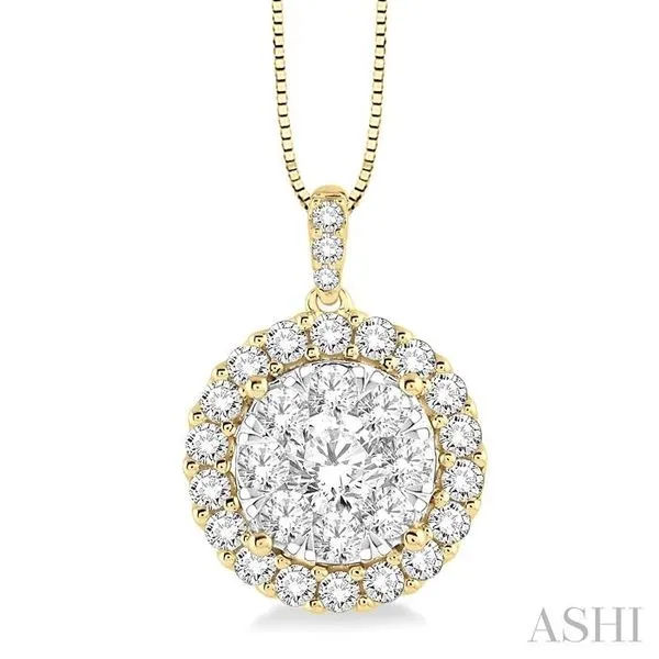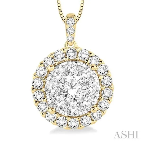1 Ctw Round Cut Diamond Lovebright Pendant in 14K Yellow and White Gold with Chain Image 2 Adler's Diamonds Saint Louis, MO