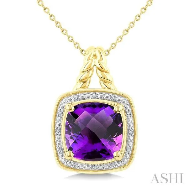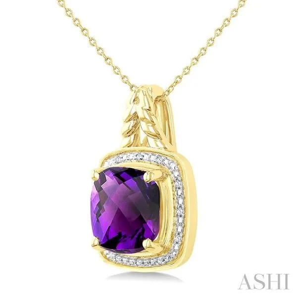 10 MM Cushion Shape Amethyst and 1/20 Ctw Round Cut Diamond Semi-Precious Pendant With Chain in Yellow Gold Vermeil Image 3 Adler's Diamonds Saint Louis, MO