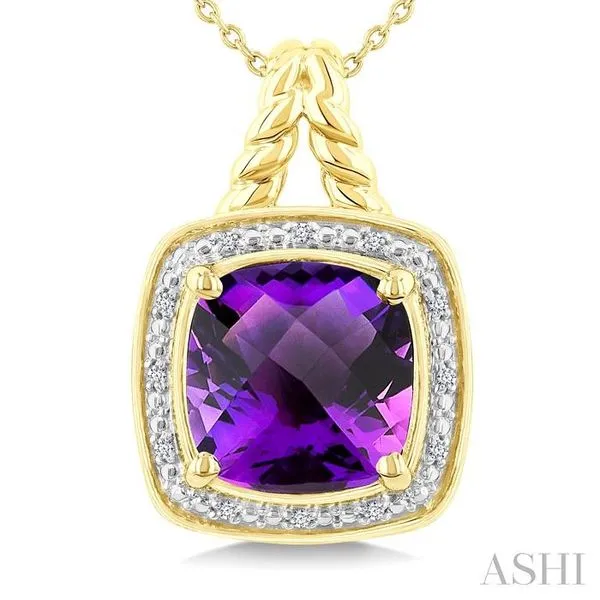 10 MM Cushion Shape Amethyst and 1/20 Ctw Round Cut Diamond Semi-Precious Pendant With Chain in Yellow Gold Vermeil Image 2 Adler's Diamonds Saint Louis, MO