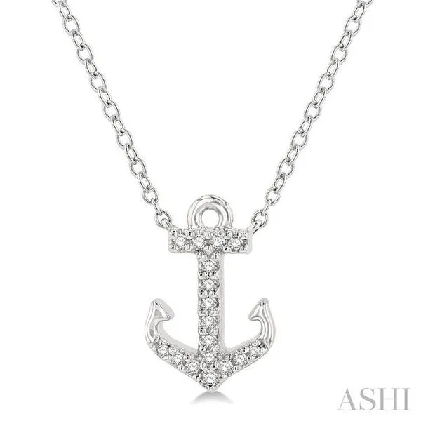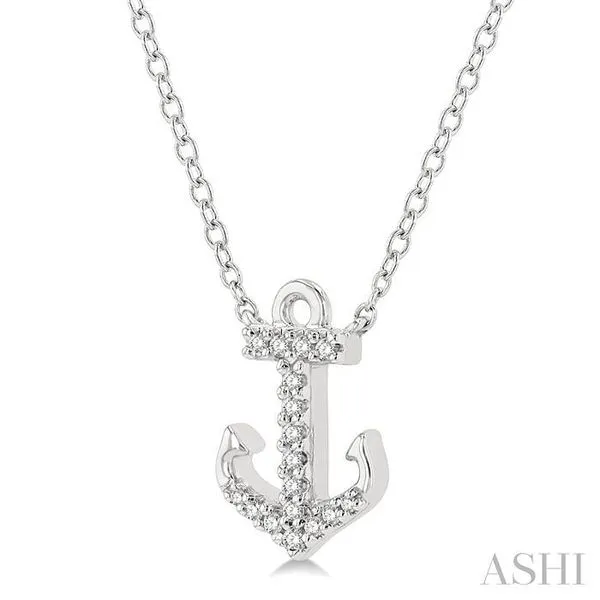 1/10 Ctw Anchor Round Cut Diamond Petite Fashion Pendant With Chain in 10K White Gold Image 3 Adler's Diamonds Saint Louis, MO