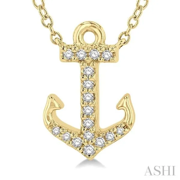 1/10 Ctw Anchor Round Cut Diamond Petite Fashion Pendant With Chain in 10K Yellow Gold Image 2 Adler's Diamonds Saint Louis, MO