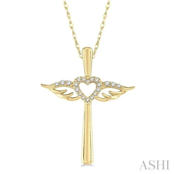 1/10 Ctw Angel Wing & Heart Round Cut Diamond Cross Pendant With Chain in 10K Yellow Gold Image 3 Adler's Diamonds Saint Louis, MO
